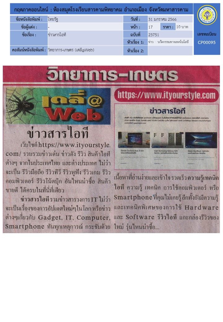 เนื้อหาย่อ : กฤตภาคออนไลน์ : ห้องสมุดโรงเรียนสารคามพิทยาคม อำเภอเมือง จังหวัดมหาสารคาม