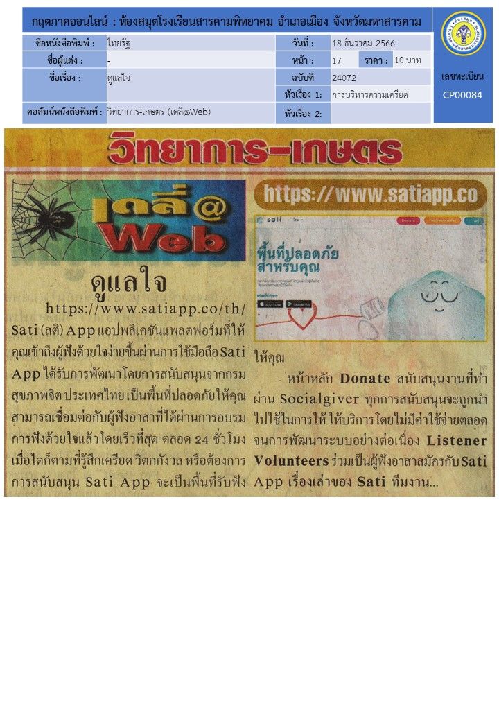 เนื้อหาย่อ : กฤตภาคออนไลน์ : ห้องสมุดโรงเรียนสารคามพิทยาคม อำเภอเมือง จังหวัดมหาสารคาม