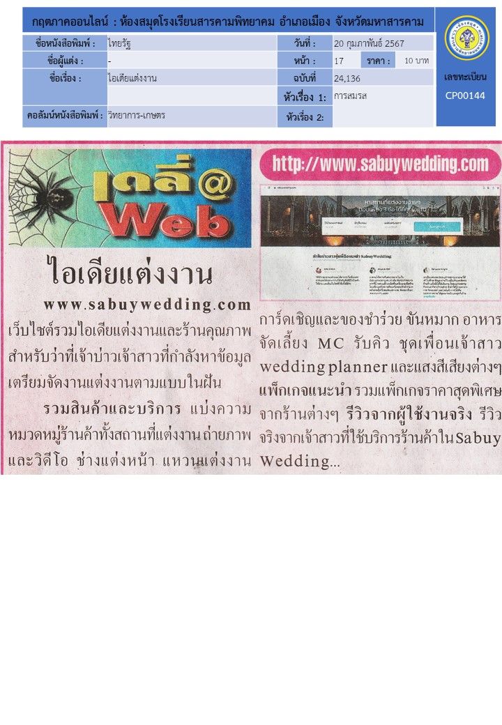 เนื้อหาย่อ : กฤตภาคออนไลน์ : ห้องสมุดโรงเรียนสารคามพิทยาคม อำเภอเมือง จังหวัดมหาสารคาม