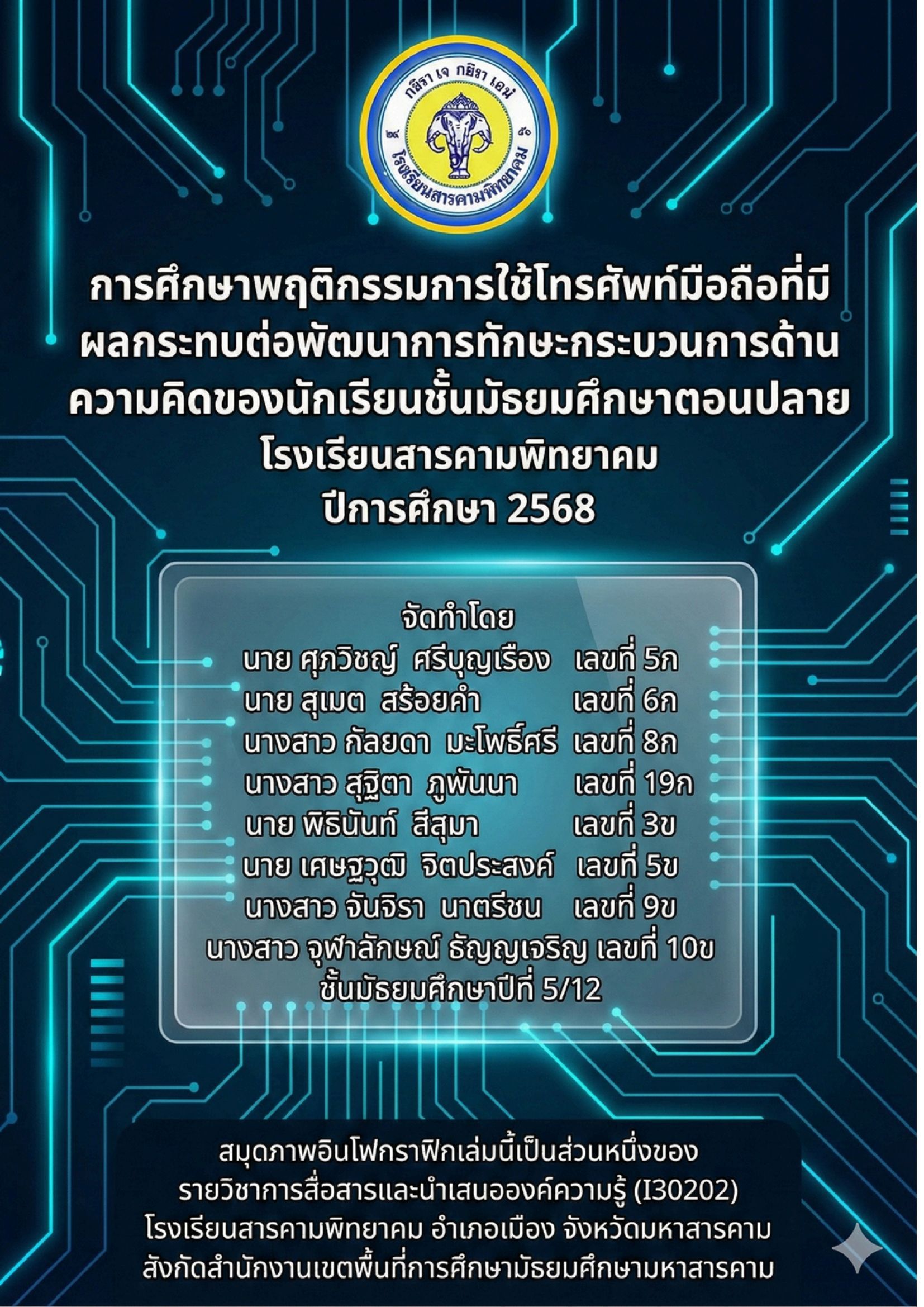 การศึกาาพฤติกรรมการใช้โทรศัพท์มือถือที่มีผลกระทบต่อพัฒนาการทักษะกระบวนการด้านความคิดของนักเรียนชั้นมัธยมศึกษาตอนปลาย